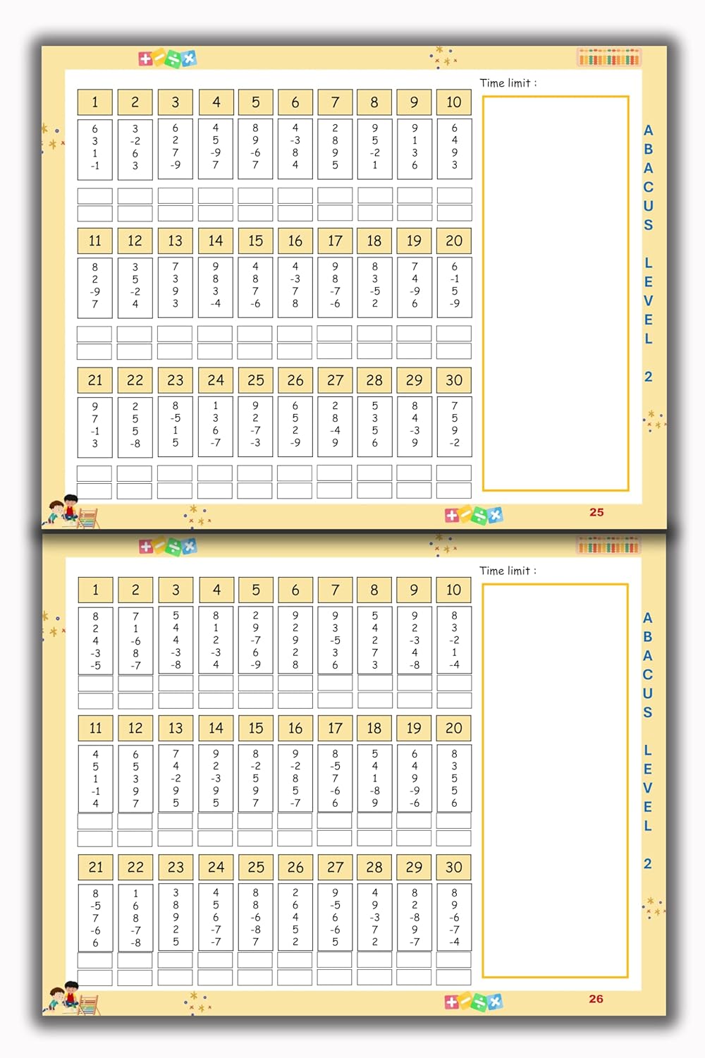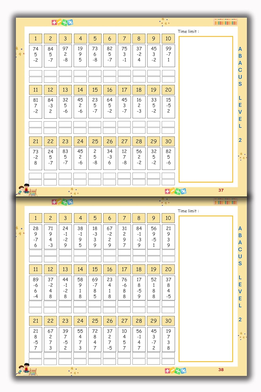 Our Abacus Level 2 Book is meticulously designed to advance young learners' arithmetic skills by introducing them to foundational addition and subtraction techniques, progressing to more complex formulas for enhanced calculation efficiency.