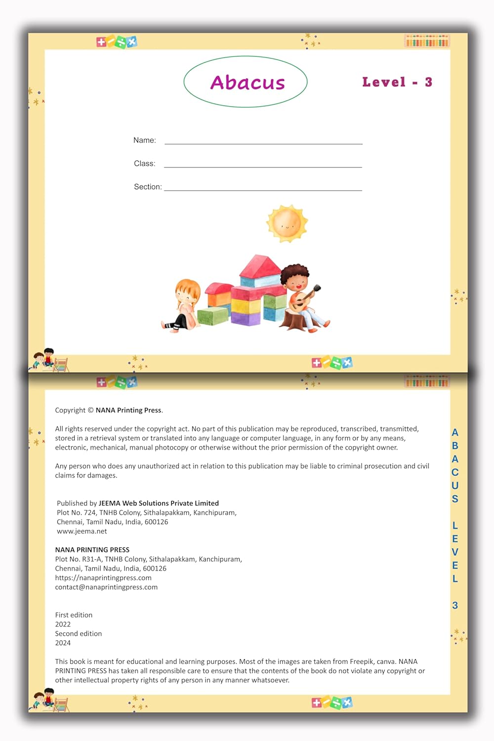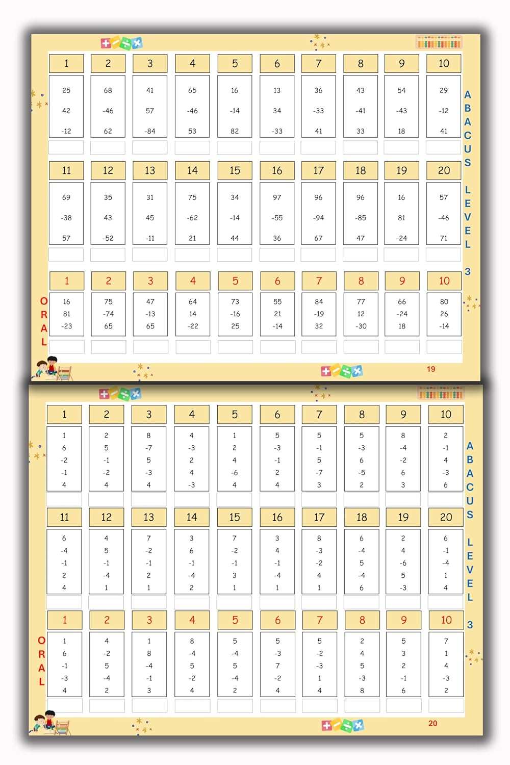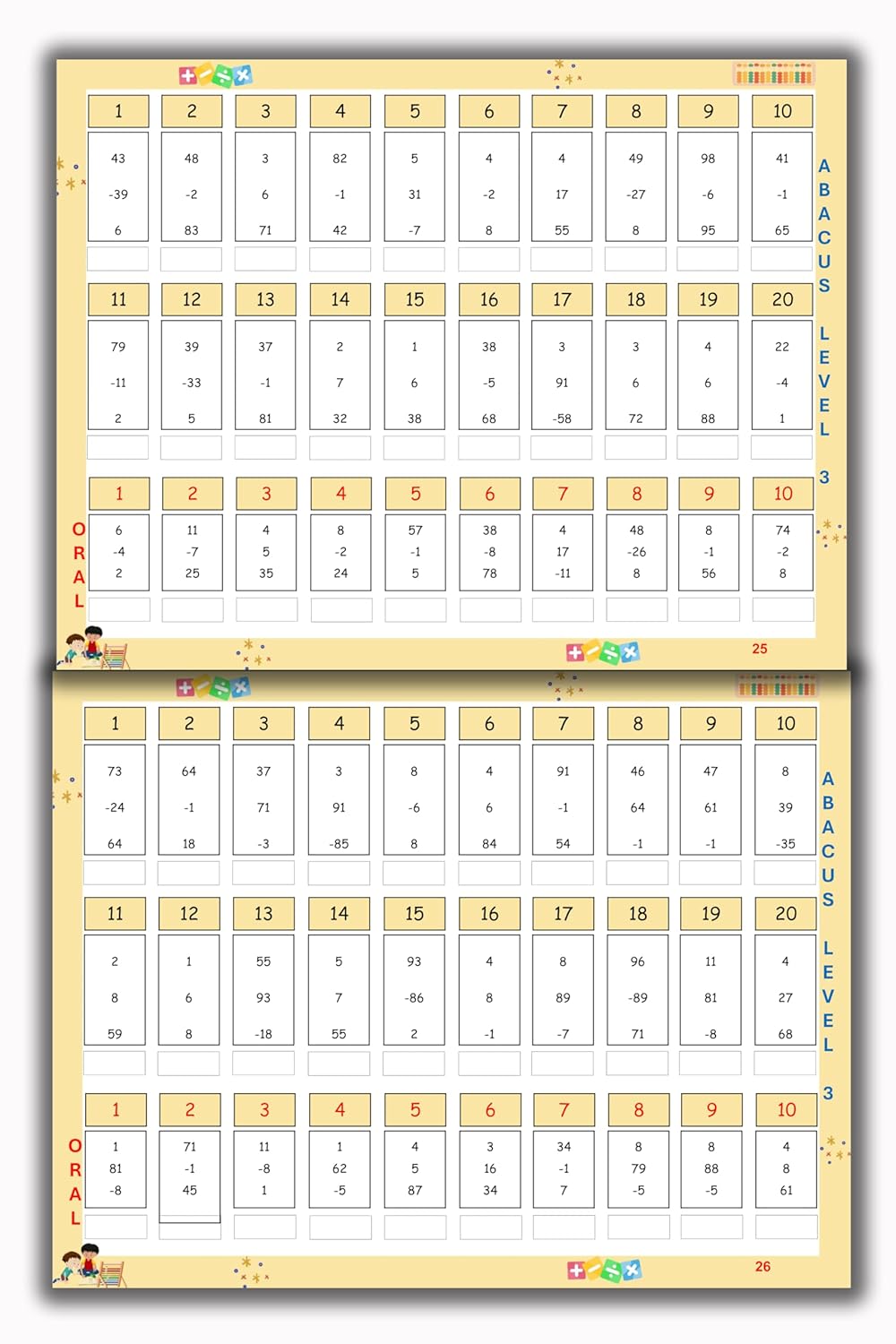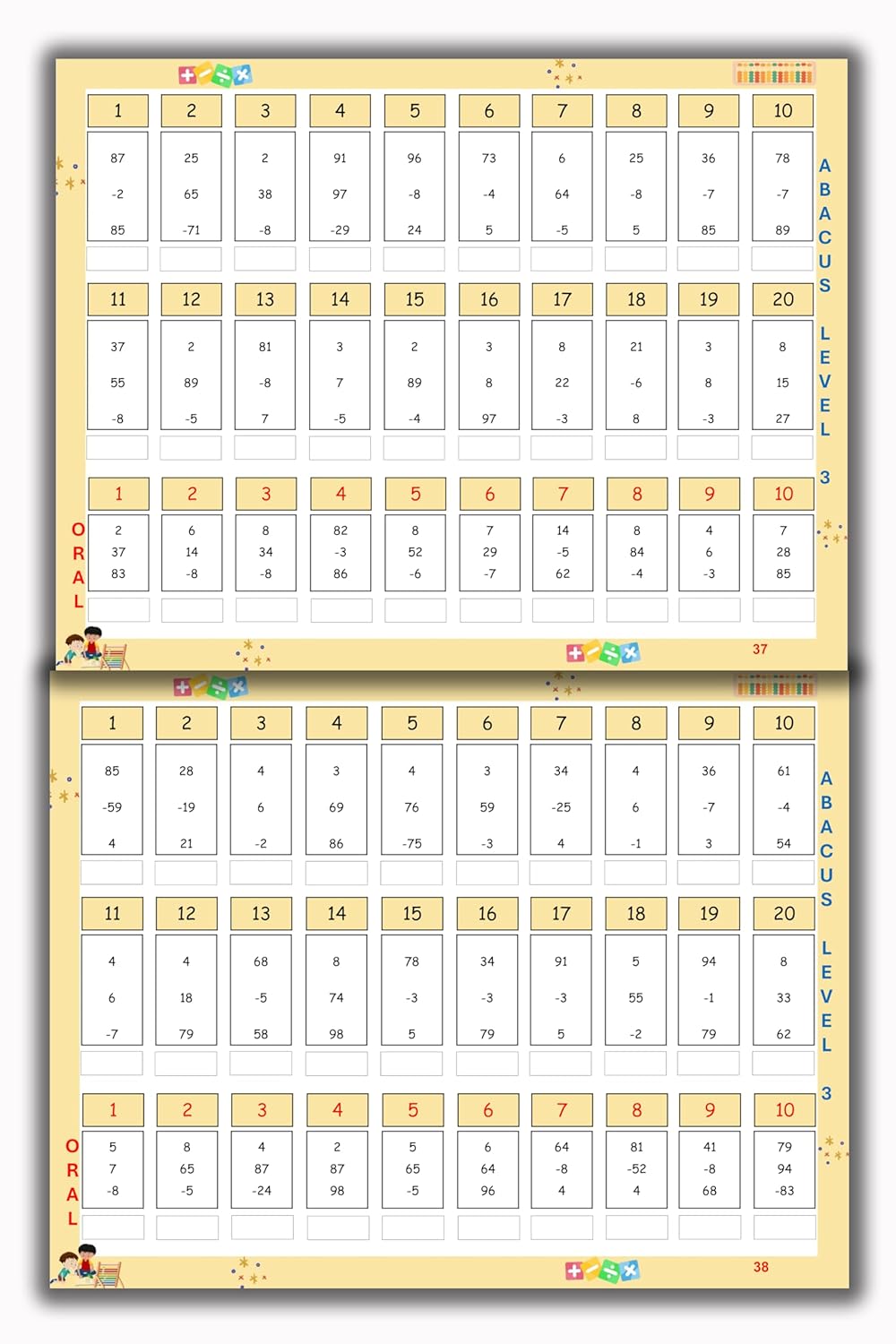 Our Abacus Level 3 Book is expertly designed to further develop young learners' arithmetic skills by introducing advanced abacus techniques, enhancing mental calculation abilities, and fostering a deeper understanding of mathematical concepts.