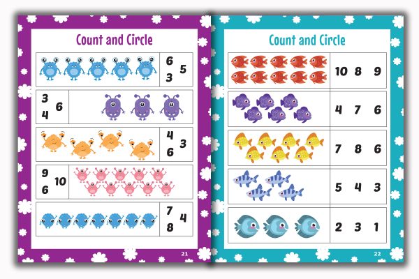 Count and Circle: Focusing on early math skills, this book presents counting exercises where children count objects and circle the correct number. These activities reinforce number recognition and counting proficiency, making math both enjoyable and educational.