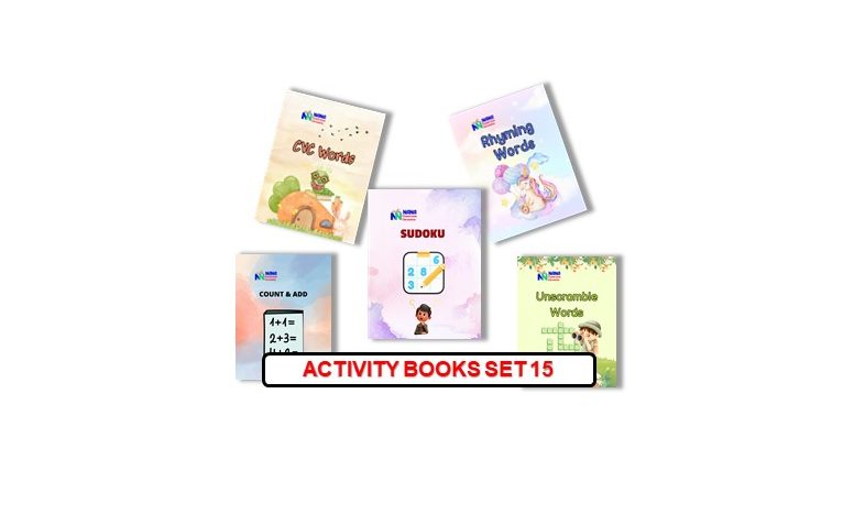Activity Books Combo 15 - Count And Add, CVC Words, Rhyming Words, Sudoku, Unscramble Words