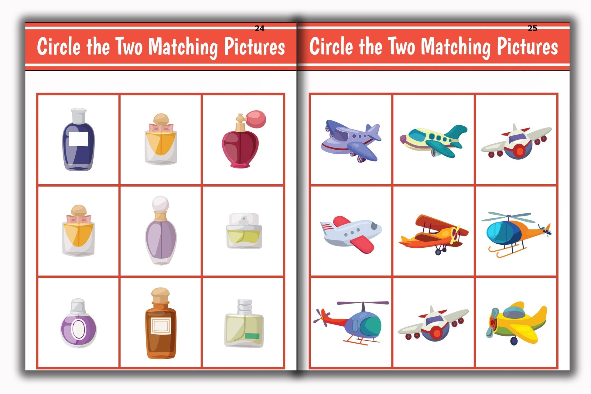 In Circle The Two Matching Pictures, children are presented with pairs of images, prompting them to identify and circle the matching ones. This activity sharpens visual discrimination and cognitive matching skills, providing a fun challenge for young minds.