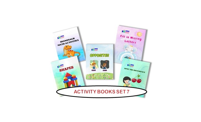 Activity Books Combo 7 - Dinosaur Math Activities, Fill In Missing Letters, Opposites, Shapes, Spot The Differences