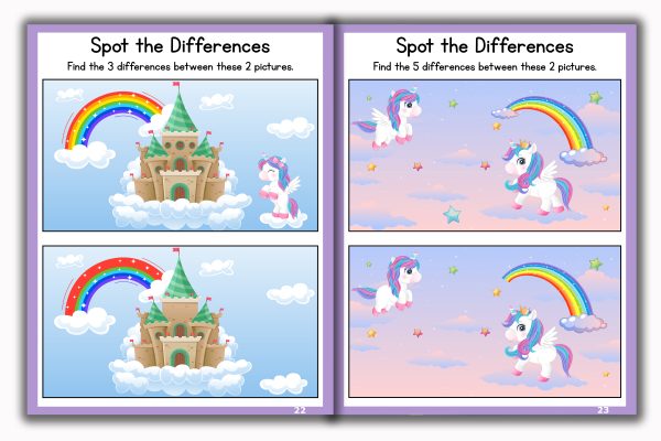 Spot The Differences: Sharpen observation skills with this engaging book. Children will compare two similar images and identify the differences, improving their attention to detail and critical thinking abilities.