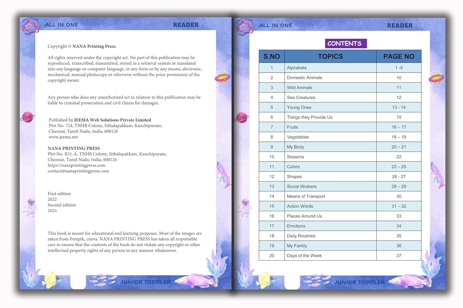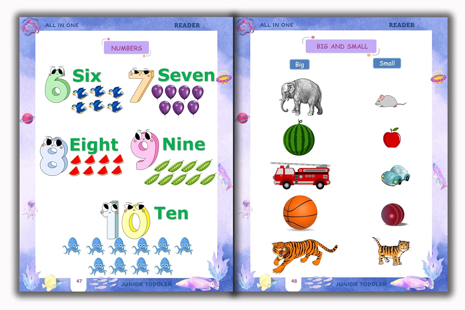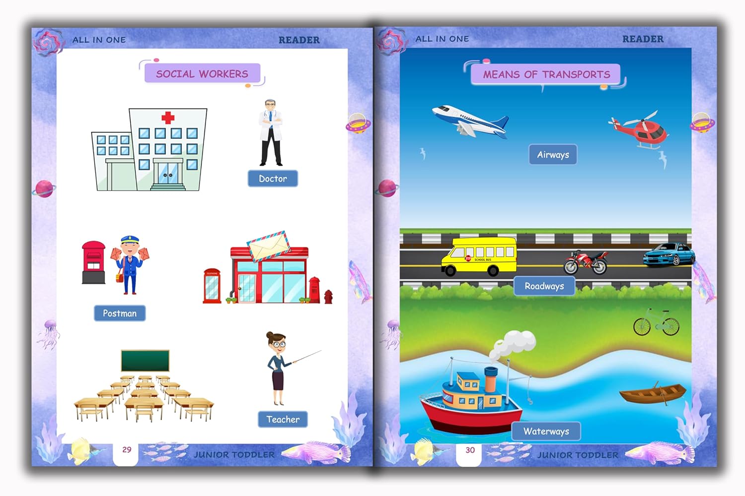 Ideal for parents and educators, this All-in-One Reader Book serves as a valuable tool in early childhood education, providing a solid foundation across essential subjects in a fun and engaging manner.