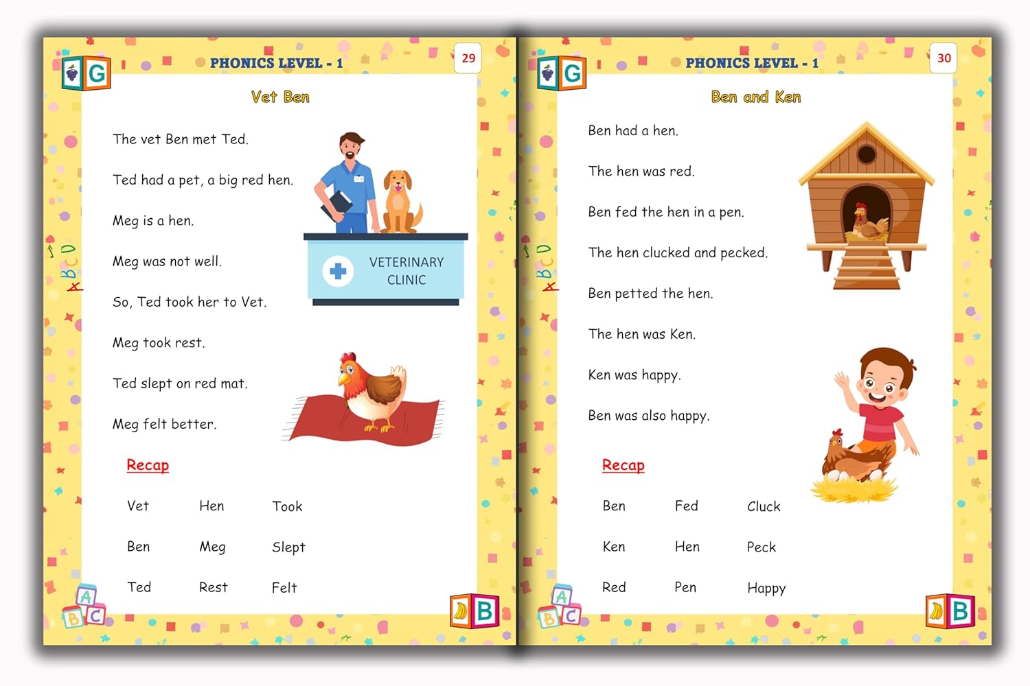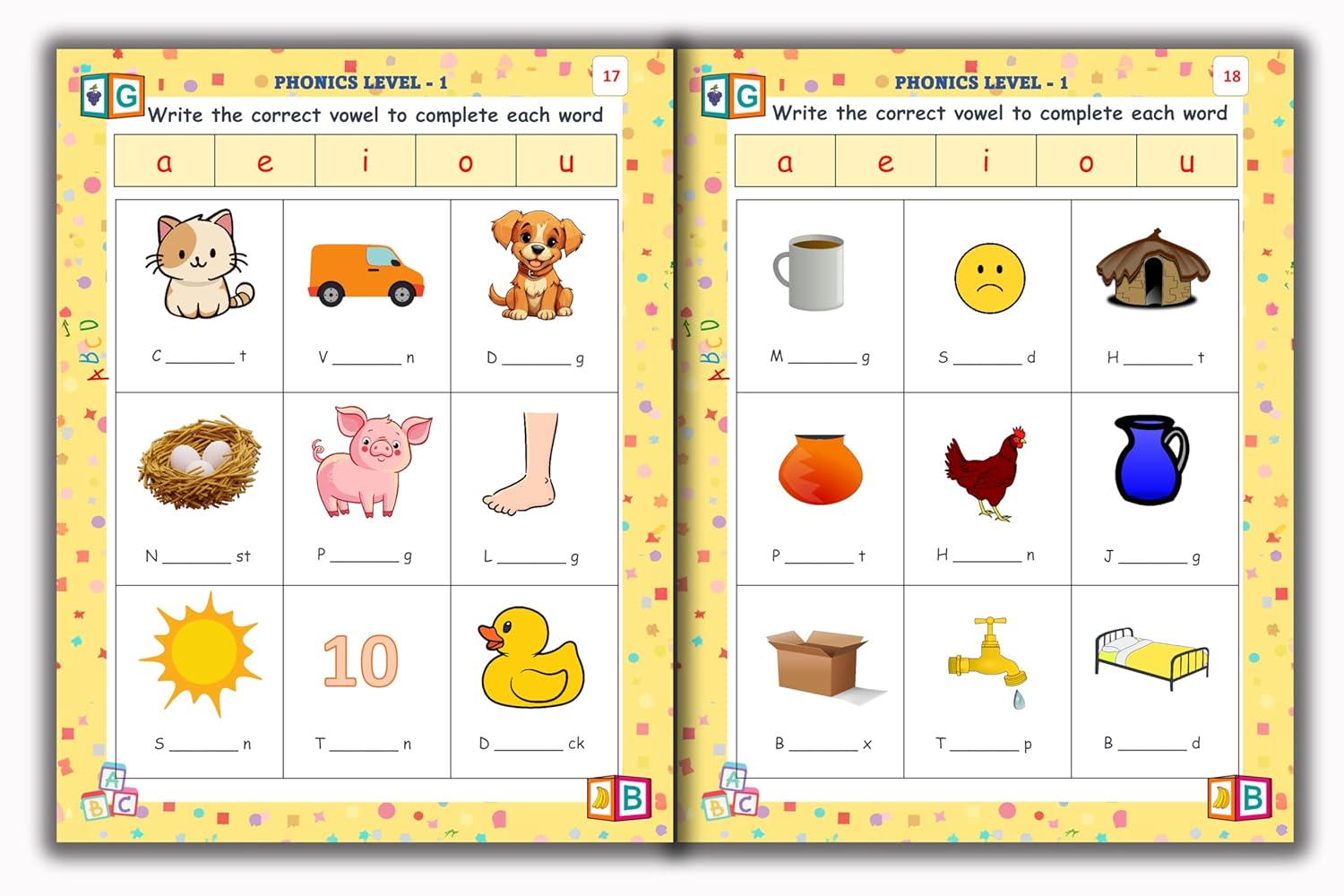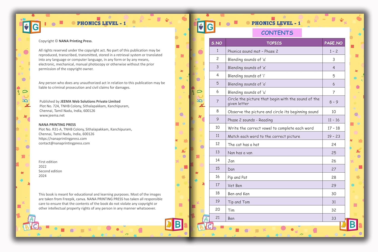 Kickstart your child's reading journey with our Phonics Level 1 book! Designed for beginners, this engaging workbook helps children master essential letter sounds and start blending letters to form words. It’s packed with fun phonics exercises that reinforce learning while making it enjoyable. Perfect for early readers, this workbook also introduces word reading and progresses to simple story reading, helping kids build confidence as they practice. Ideal for classroom use, homeschooling, or extra practice at home, it lays the foundation for lifelong reading skills.
