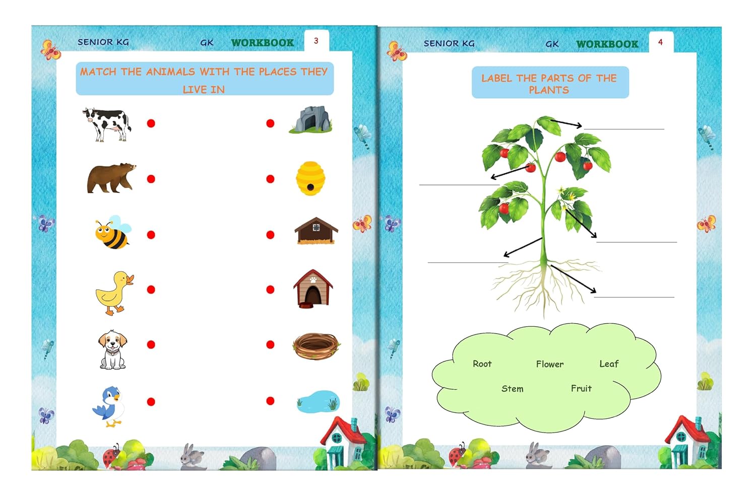 The workbook is packed with fun activities related to animals and their babies, animals and their homes, and explores important concepts like the life cycle of plants, butterflies, and frogs. Through simple exercises, children will also learn about the parts of a plant, the five senses, and the role of social workers in the community.