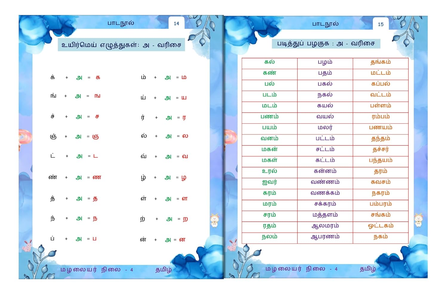 Children will later start with Kuriyidugal (syllables). As they advance, they will be introduced to word reading, making the learning process gradual and effective.