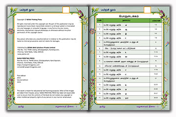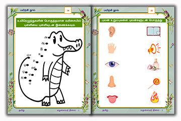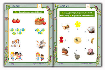Our Pre-KG Tamil Workbook is designed to introduce young learners to the fundamentals of the Tamil language through engaging exercises complemented by colorful illustrations. This workbook focuses on enhancing writing skills, particularly in tracing Uyir Ezhuthukkal (vowels), and includes activities for identifying numbers (எண்கள்), colors (நிறங்கள்), and shapes (வடிவங்கள்), making it an ideal tool for early language development.